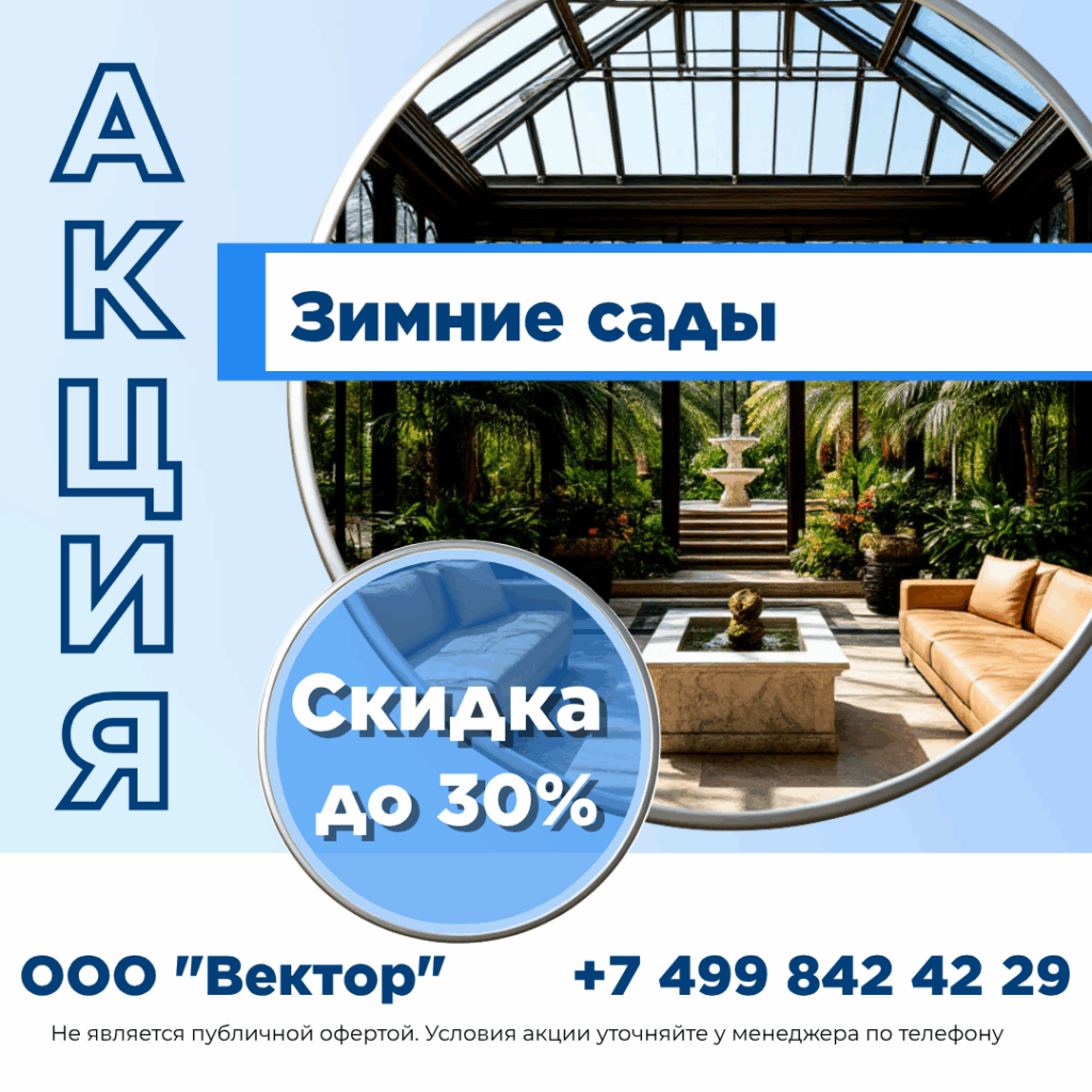 Обратитесь к менеджерам компании Вектор, чтобы заказать обустройство зимнего сада под ключ. Мы возьмем на себя решение ряда технических вопросов, включая индивидуальное проектирование зимнего сада, его изготовление и последующую установку.